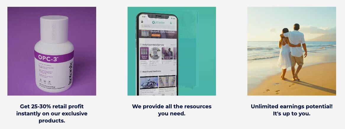Products: support your own business by shopping from your own website, and get a few customers to shop from you.